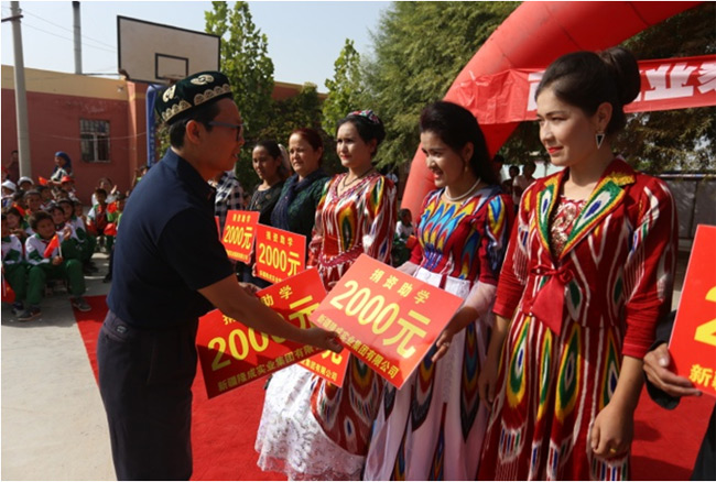 前往南疆庫木薩克村,走訪貧困戶,為貧困學(xué)子、貧困家庭捐贈愛心基金10萬元