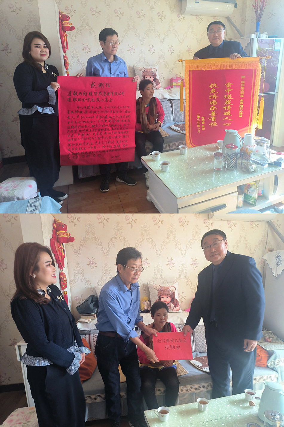 “追求卓越,崇尚愛(ài)心”是隆成集團(tuán)從成立之初就一直秉持的企業(yè)精神。2023年10月11日,隆成集團(tuán)監(jiān)事庫(kù)國(guó)強(qiáng)先生率領(lǐng)集團(tuán)總經(jīng)辦主任胡振華一同前往水磨溝區(qū)退休職工時(shí)明德家中,代表隆成集團(tuán)為時(shí)明德夫婦送上3萬(wàn)元“金雪馳愛(ài)心基金”扶助金。