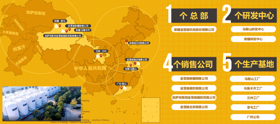 金雪馳奎屯工廠,公司自2001年成立以來,市場逐步擴大,銷售區(qū)域劃分為疆內(nèi)和疆外兩大部分,疆內(nèi)覆蓋南疆、東疆和北疆市場,疆外遠銷山東、河南、四川、上海等地。